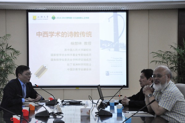 文学院基督教研究中心2014-2015学年度访问学人系列活动于4月6日至8日隆重举行。活动有幸邀得原人民大学副校长杨慧林教授莅校,以“中西文化的互动与互鉴”为主题,展开丰富精彩的学术交流。