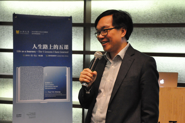 5月5日晚上,图书馆演讲厅迎来了一位风趣幽默而又博学的讲者,他通过有趣而深刻的故事,为我校学生们分享作为一个学者在人生路上所学会的五课,他 就是香港大学协理副校长张英相教授。张英相教授此次应文学院基督教研究中心(CCS)邀请,莅校为2015年度CCS全人生命教育系列讲座之二开讲,汕头 大学执行校长顾佩华教授担任讲座主持,李嘉诚基金会高级项目经理罗慧芳博士出席了讲座。