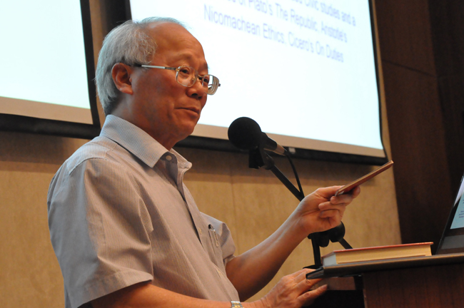 5月13日晚,香港大学圣约翰学院院长张志明博士应邀在学术交流中心三号会议室开讲2015年度CCS全人生命教育讲座系列之三、至诚讲坛第十九期,畅谈其生命旅途上三位导师——柏拉图、亚里斯多德与西塞罗。汕头大学•香港中文大学联合基督教研究中心主任卢龙光教授担任讲座主持。