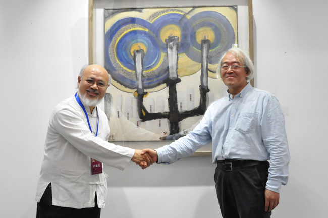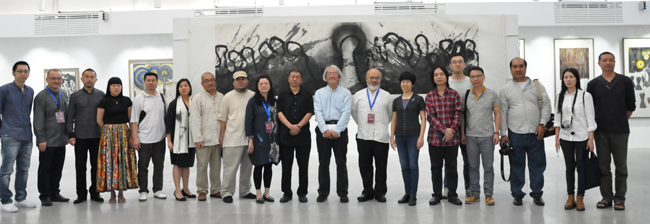 画展开幕后,艺术沙龙于学术交流中心接踵进行。岛子教授、郝青松博士、青年艺术评论家艾蕾尔博士与汕大教师、潮汕本土艺术家和艺术爱好者们就当代艺术之转向困境等前沿问题进行深入探讨。郝青松博士说到,圣水墨通过挖掘基督教文化之根本,唤醒和激发了传统笔墨的生命能量和精神潜力。艾蕾尔博士则以岛子教授历年画作为例,分析了圣水墨对于当代水墨艺术在创作手法转型和精神探索方面的双重启发作用。