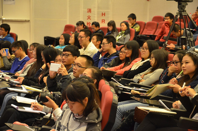 三位教授和在场师生进行了精彩互动,他们机智而深刻的回答,赢得了在场师生的阵阵掌声。