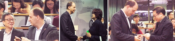 4月5日晚,“汕头大学艺术季”与“犹太-以色列文化活动系列”携手举办音乐会,匈牙利小提琴独奏家艾斯特·克莱曼·斯坦科斯基(Eszter Kleinman-Stankowsky)女士和以色列钢琴家阿萨夫·克莱曼(Asaf Kleinman)先生应邀莅校演出。音乐会以Around the World为题,悠扬的小提琴,伴随着清亮的钢琴,为师生们带来一个美妙的仲春之夜。是次活动由以色列驻广州总领事馆,汕头大学长江艺术与设计学院、艺术教育中心主办。以色列驻广州总领事馆总领事南可安先生(Nadav Cohen)、经济事务主任辜玉璇女士专程前来出席活动,为领事馆与汕头大学本年度联合举办中以建交25周年纪念文化交流活动拉开了序幕。香园钢琴博物馆创办人、汕头大学艺术教育中心客席导师李廷强先生则担任了活动主持。