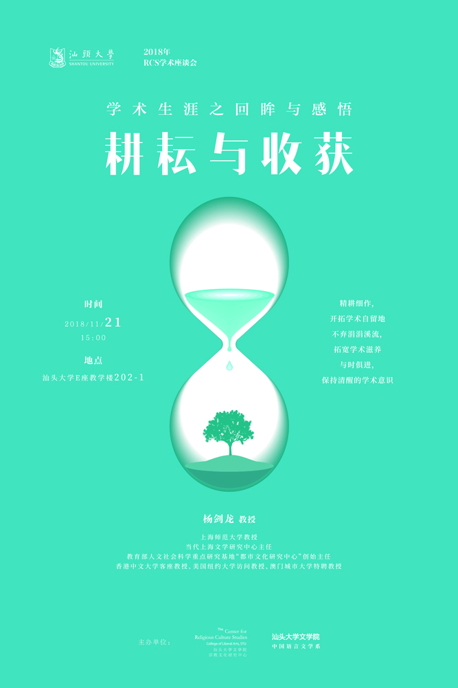 杨剑龙教授将梳理与回眸他的学术生涯,从求学之路到教学历程,从文学研究到都市文化研究。总体而言,杨教授将从三个方面归纳他的学术感悟:1、始终坚持脚踏实地、勤奋劳作,一分耕耘、一分收获,精耕细作,开拓学术自留地;2、坚持持续学习与进步,不弃涓涓溪流,拓宽学术滋养;3、坚持与时俱进,保持清醒的学术意识。